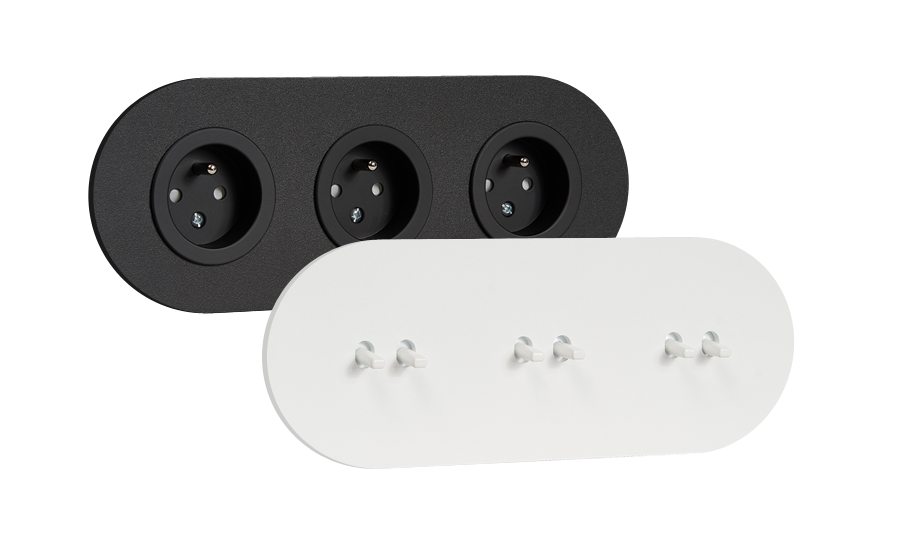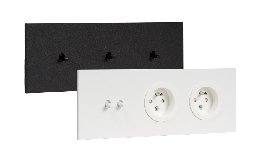 Минималистичная форма и цвет, рамки из прочного алюминия с матовой белой или черной поверхностью. Монолитная панель украшена тонким рычагом, который отсылает к историческим переключателям. Идеально вписывается практически в любой интерьер.